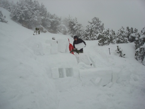 Stunden im Schneetreiben unweit der Ebenalp zwei geräumige Iglus aufgebaut.