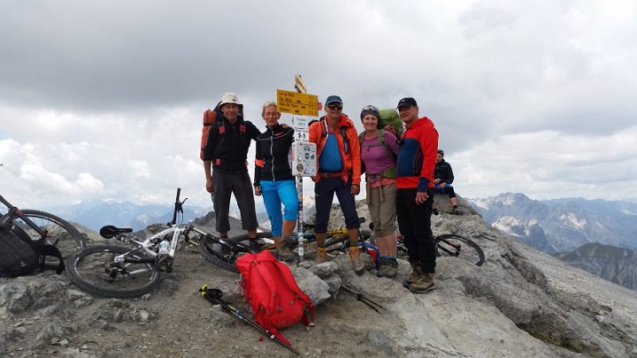 Fünf Naturfreunde mit Zelt, Tarp und Bivi am Lai da Rims. Freitag: Bivak unter freiem Himmel nähe Valchava. Samstag: nach ausgedehntem Frühsück mit Postauto auf den Umbrailpass, Aufstieg zum Piz Umbrail, über einen schönen Grat auf den Chazfora, wegloser Abstieg über Geröll zum Lai da Rims. Ein Bartgeier gab uns die Ehre - sensationell! Sehr viele Biker unterwegs. Übernachten am schönen Lai da Rims. Sonntag: nach einer regnerischen Nacht stiegen zwei von uns ab u. zu dritt nahmen wir den Grat zum Piz Praveder unter die Luppe. Abstieg nach Sta. Maria. Wir waren ein tolles Outdoorwandertrüppli