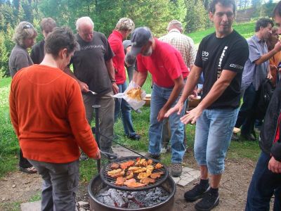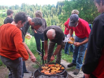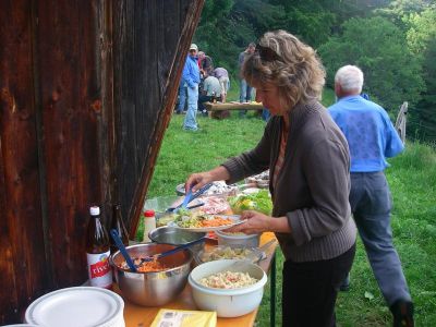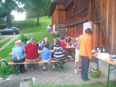 Eine Schar von Rheintaler Naturfreunden hat sich für einen gemütlichen Frühsommer-Höck beim Tönihuus getroffen